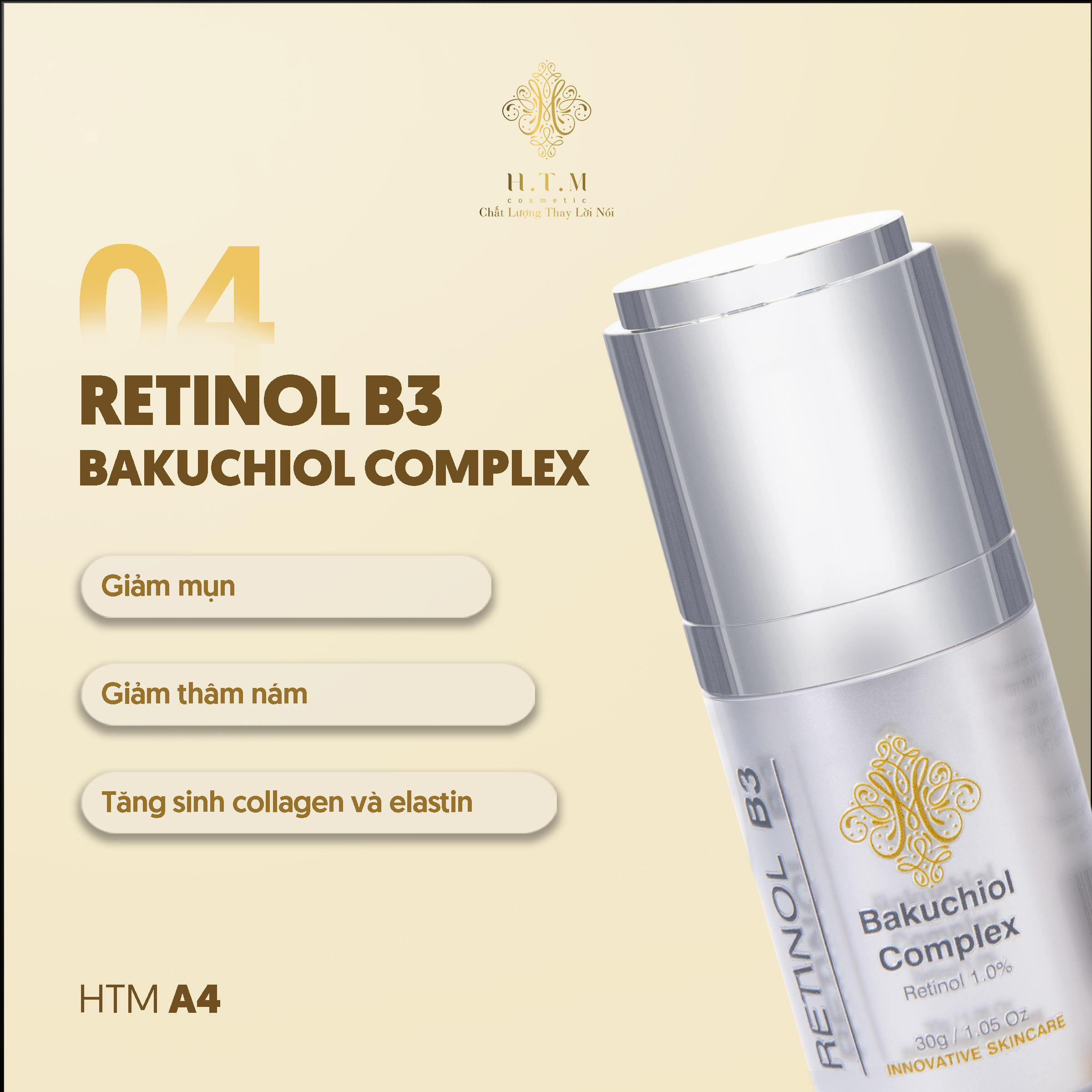 Tranexamic Acid, Niacinamide (Vitamin B3), Retinol 1.0%, Chiết xuất rau má, Bakuchiol |